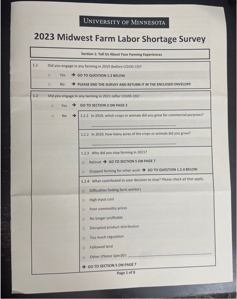 A survey was distributed to around 1,350 farmers living in three Midwest states (Michigan, Minnesota, and Wisconsin) to explore how farmers responded to short-run labor supply shocks during Covid-19 and understand whether farmers’ adaptation to recent labor shortages mitigated the effect of Covid-19 on agricultural production.